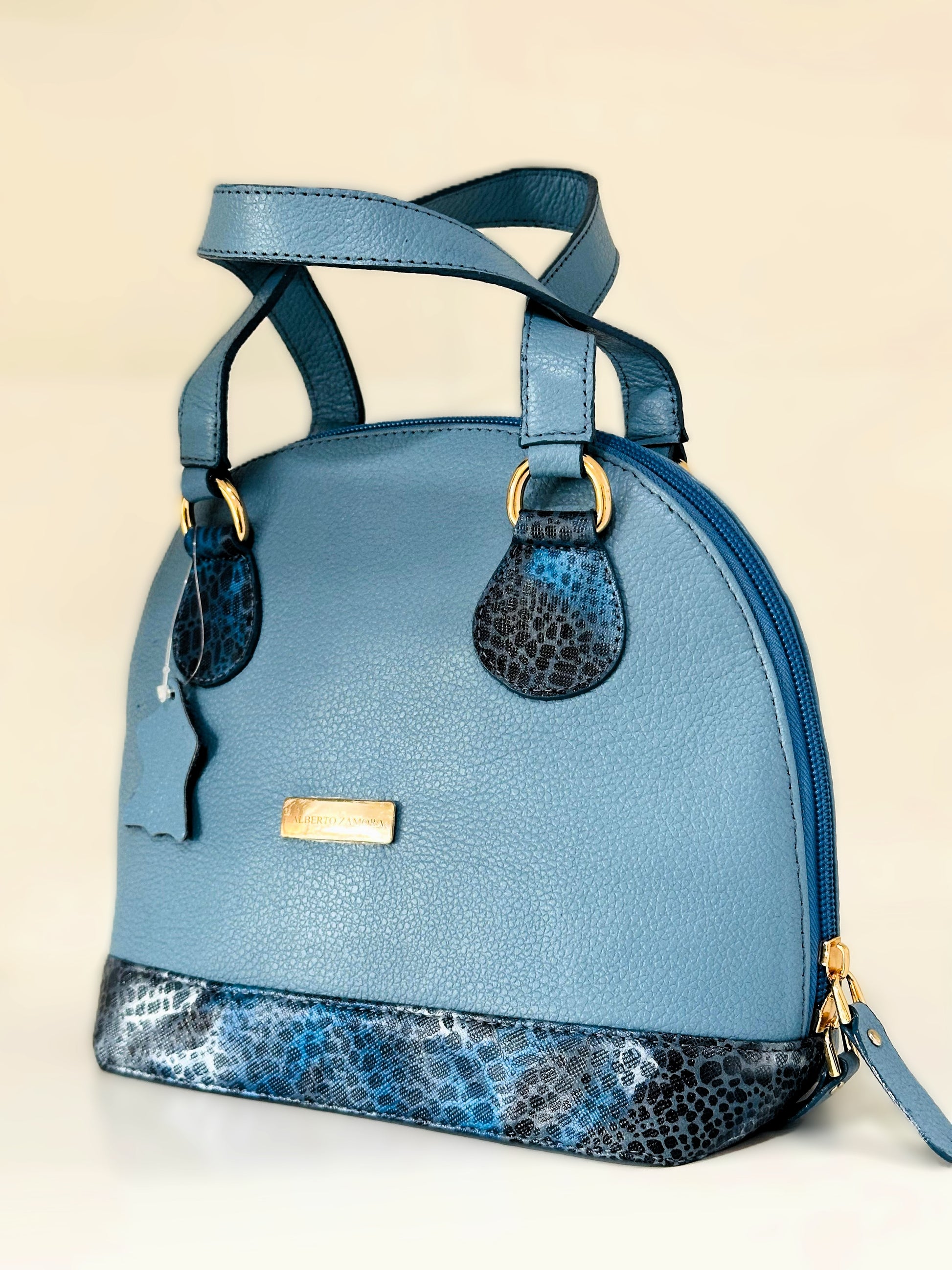 Su doble asa una de cuero y otra de tela permite llevarlo al hombro o de mano, adaptándose a cualquier ocasión con comodidad y estilo.