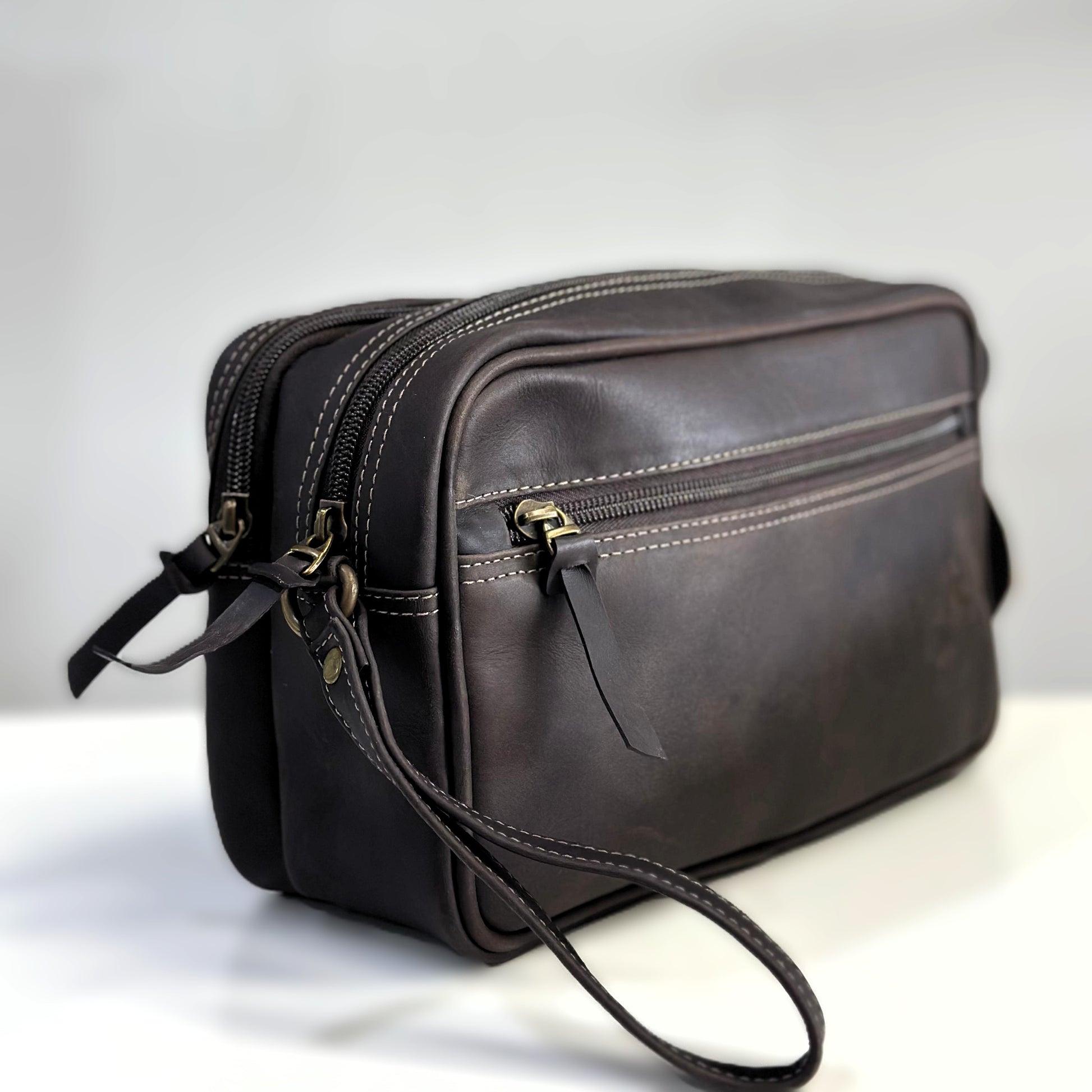 Sus cuatro compartimentos con cierre de zipper te permiten mantener todo perfectamente organizado, con la resistencia y suavidad del cuero que solo el trabajo hecho a mano puede ofrecer.